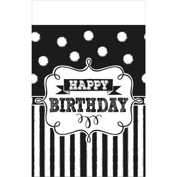 Produktinformationen: Material: Kunststoff, Länge: 26 m, Breite: 14 m, Design: Tafel, bedruckt, rechteckig, gepunktet, gestreift, Text: Anlass: Geburtstag