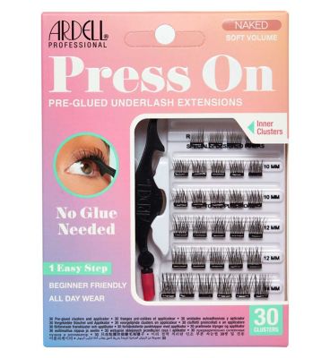 Achieve a customised soft glam look easily with ARDELL Naked Press On Underlash Extensions in the Soft Volume style. These innovative clusters come pre-glued with trusted DUO adhesive, simplifying the application process significantly. This design makes them ideal for beginners seeking professional results without the usual difficulties associated with standard lash application.