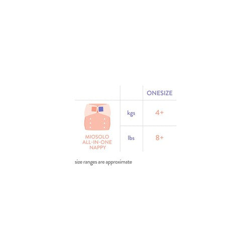 This all-in-one Bambino Mio nappy offers a stylish and soft solution, designed to be as straightforward to use as a disposable alternative. It features a onesize design, adapting comfortably to your baby from birth through to potty training age.