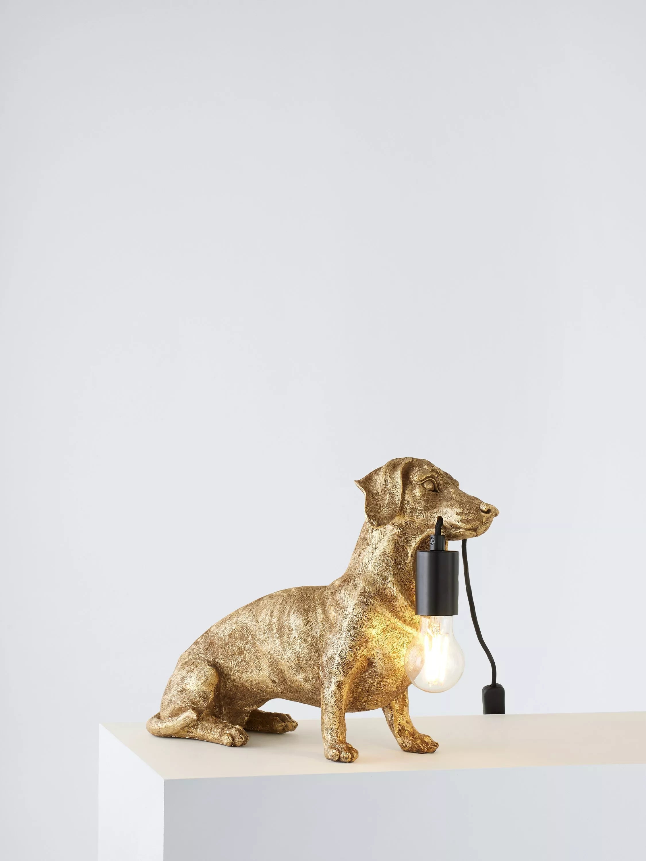 Diese goldene Vintage-Tischlampe hebt die charakteristischen Merkmale der beliebten Dackelrasse hervor und erhellt Ihr Zuhause mit dieser detailreichen Lampe.