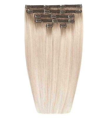 Achieve instant volume with Beauty Works 18 Inch Double Hair Set clip-in hair extensions. This set contains wefts specifically compacted onto six easy-to-apply pieces for quick styling. Each pack supplies 180g of hair density, formulated to give you immediately thick and full-bodied results.