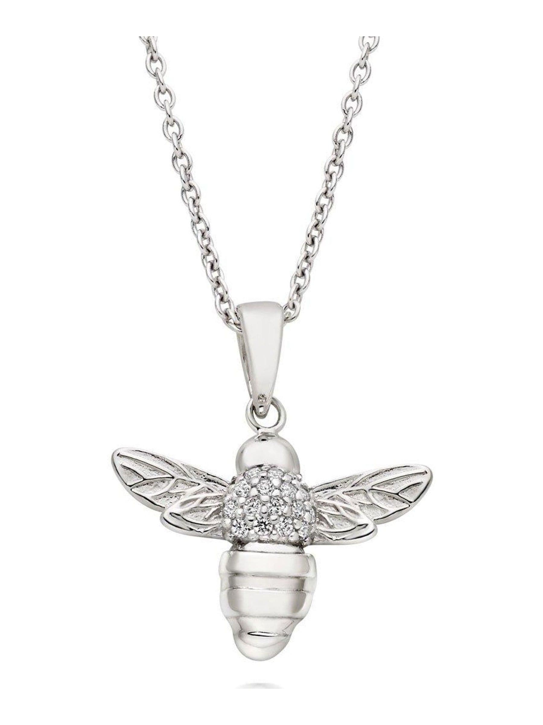 Seien Sie die Königin des Stils mit diesem silbernen Bienenanhänger. Der Anhänger mit einer Biene und Zirkonia-Stein ist an einer Silberkette befestigt und verleiht jedem Outfit das gewisse Etwas. Kettenlänge: 45 cm. Anhängerlänge: 22 mm.