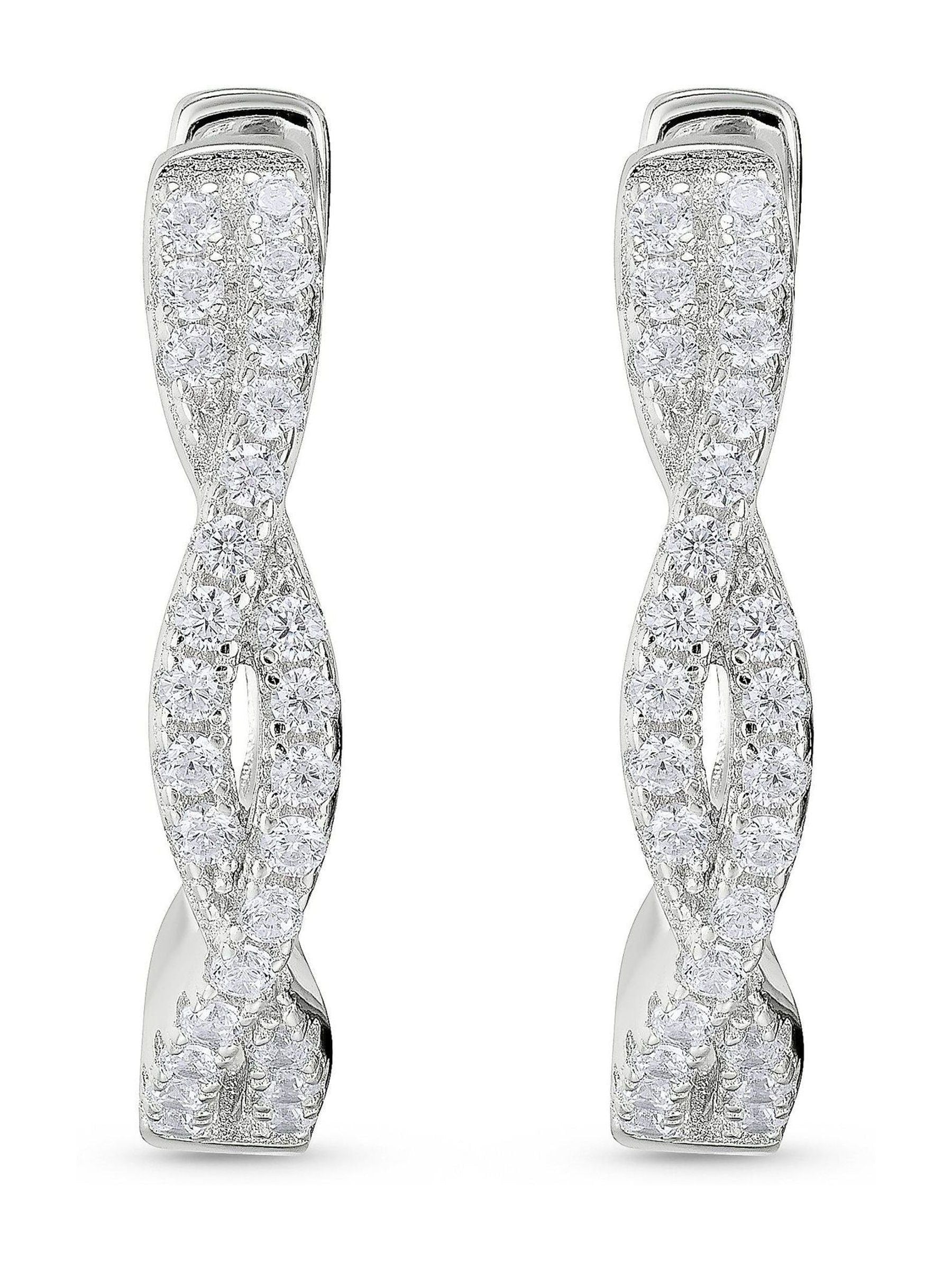Get set to sparkle with these silver cubic zirconia twist hoop earrings. Designed in silver, these hoop earrings showcase a twist design that is filled with a cubic zirconia embellishment. Dazzle day and night with these beautiful earrings.