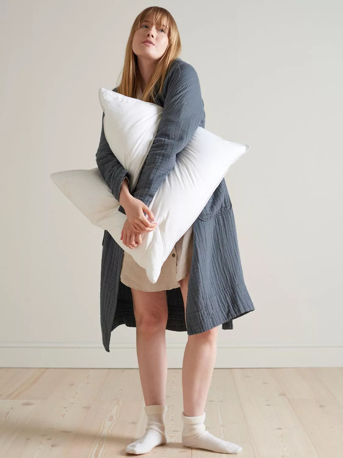 Das besonders luxuriöse quadratische Kissen von Bedfolk ist mit 100 % europäischen weißen Entendaunen aus verantwortungsvoller Herkunft gefüllt. Es ist federleicht, bauschig und luxuriös weich.
