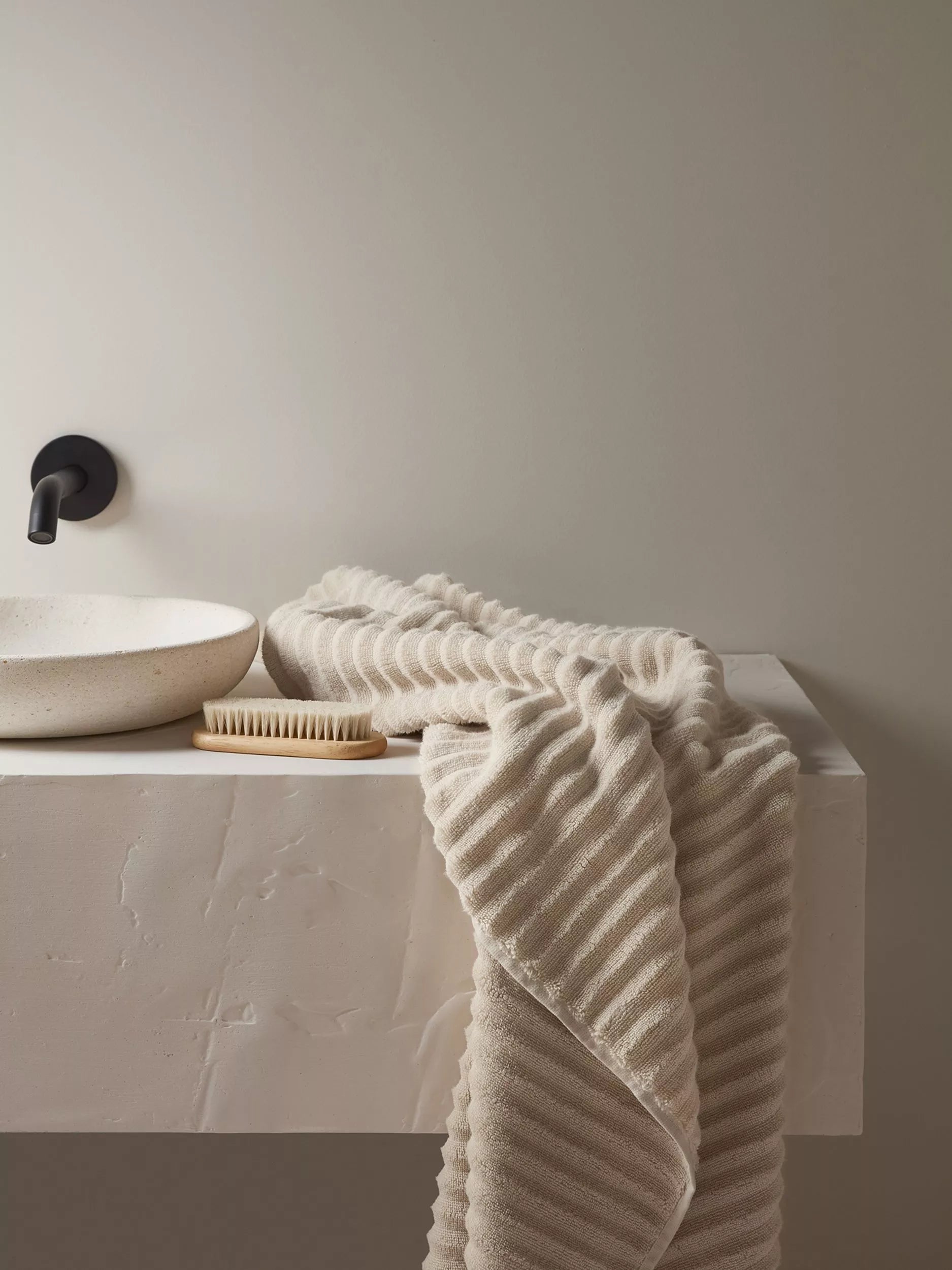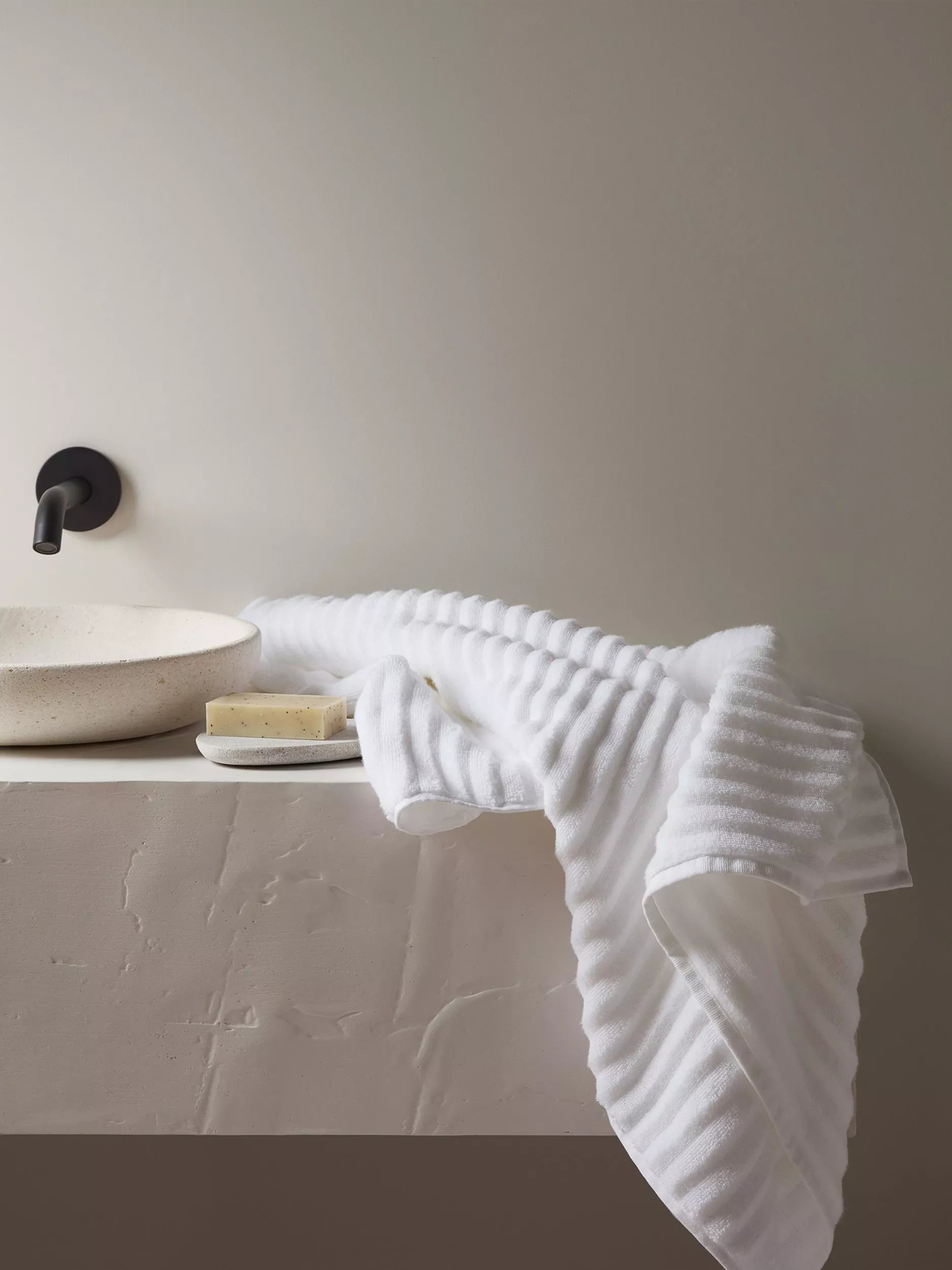 Das Ripple-Baumwollhandtuch besteht aus ultraweicher, 100 % langstapeliger türkischer Baumwolle und besticht durch sein sanftes Wellenmuster. Besonders flauschig und saugfähig, wertet das Ripple-Handtuch jedes Badezimmer auf und trägt zu einem entspannten Badeerlebnis bei.