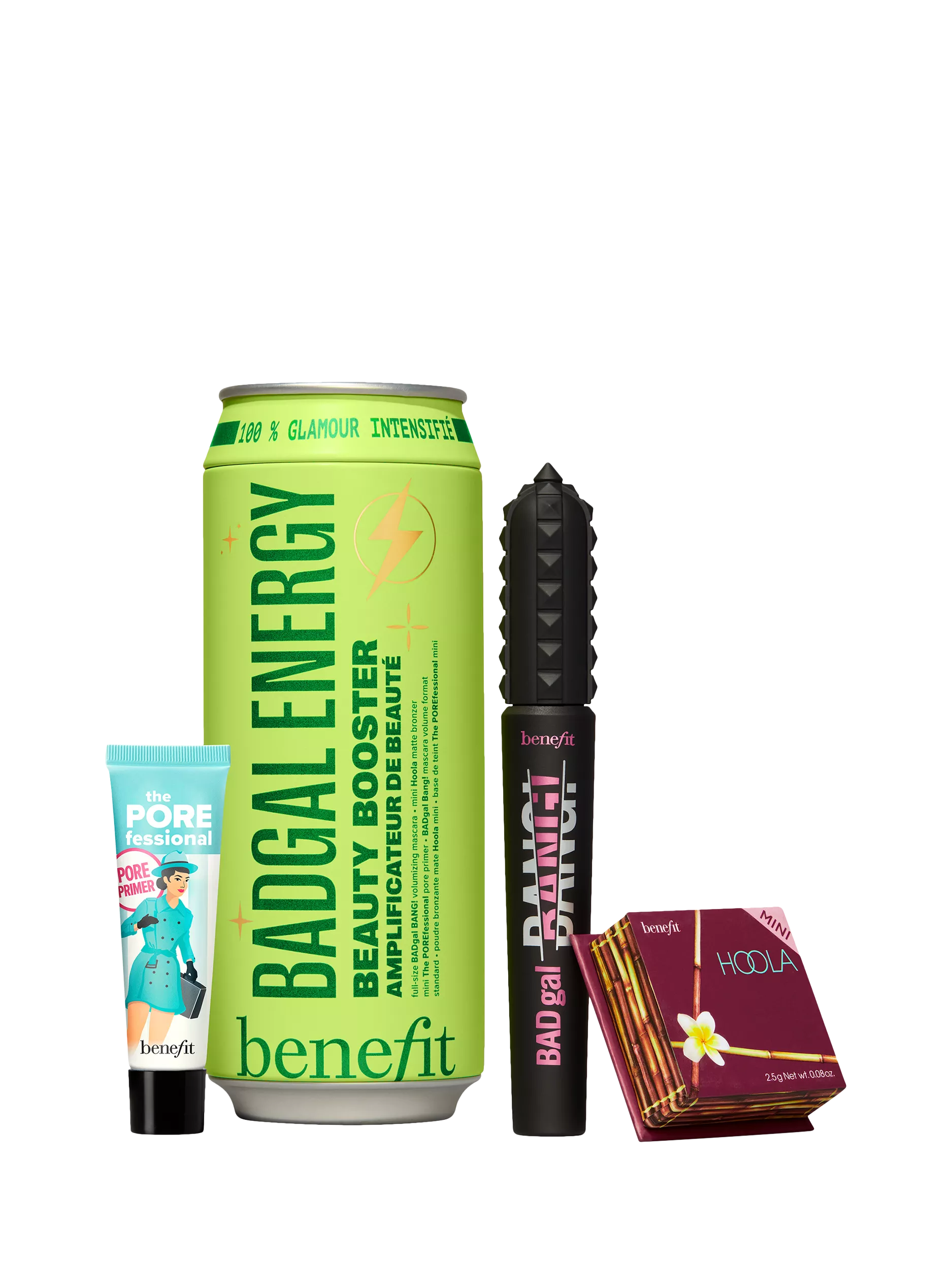 Erzähl mir mehr… Starte mit dem POREfessional Primer durch, der Poren und feine Linien sofort minimiert und für eine samtweiche Haut sorgt. Entfessle anschließend deine BADgal-Energie mit unserer Bestseller-Mascara BADgal BANG! für 36 Stunden* maximales Wimpernvolumen. Verleihe deinem Look mit dem preisgekrönten Hoola einen natürlich wirkenden, matten Bronzeton. BADgal-Energie hat sich noch nie so gut angefühlt.
