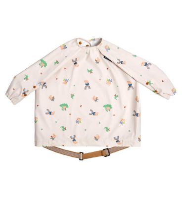 The Bibado Coverall Weaning Bib is endorsed by experts and designed to facilitate discovery during mealtimes. This garment ensures weaning babies remain completely clean, dry, and covered while exploring new foods. It attaches securely to highchairs, offering necessary protection for clothes and seating surfaces during messy meals.