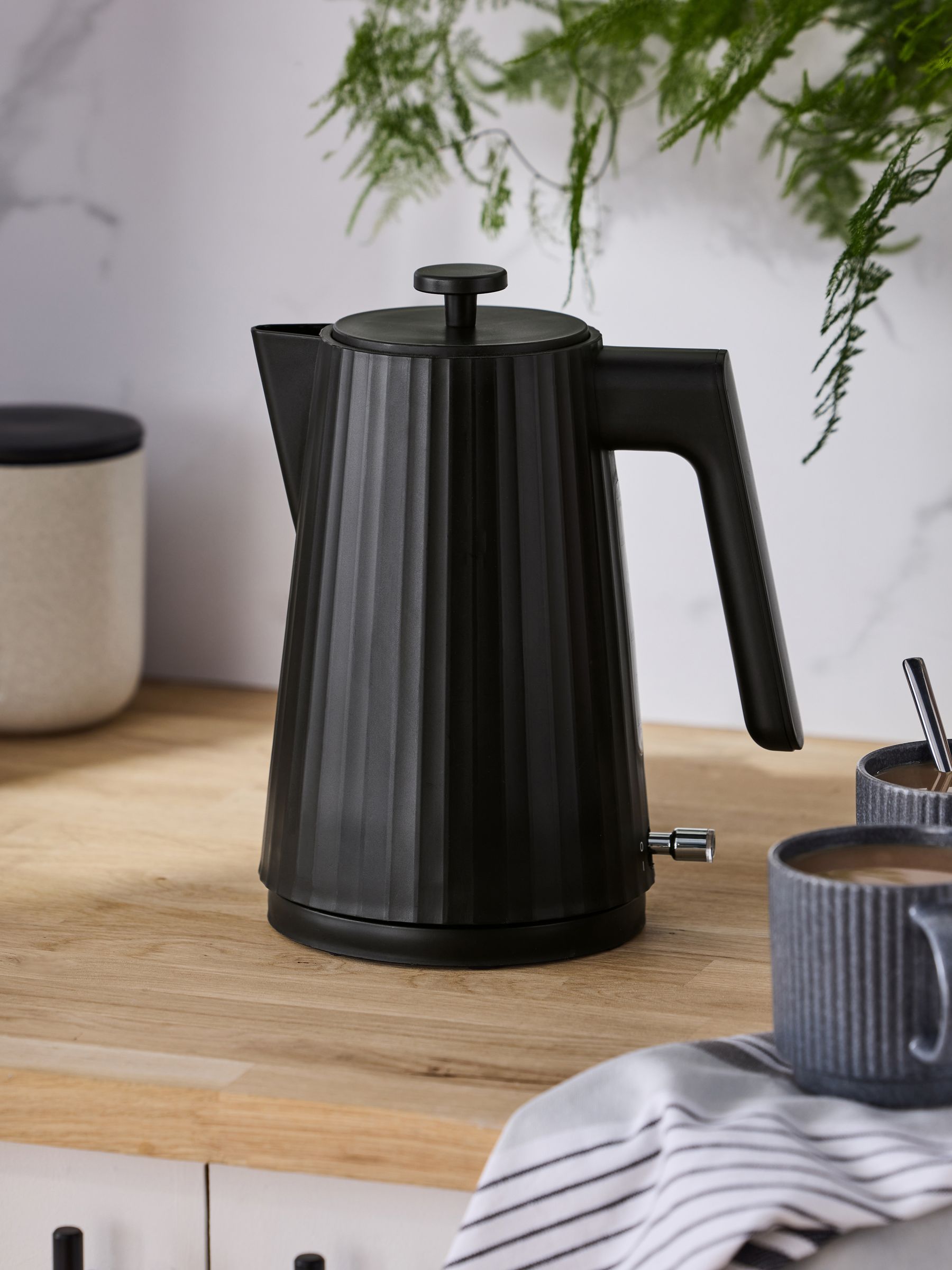 Dieser elegante Wasserkocher passt perfekt in eine moderne oder klassische Küche. Er verfügt über eine interne Tassenmarkierung, ein Fassungsvermögen von 1,7 Litern und einen herausnehmbaren Filter für eine einfache Reinigung.