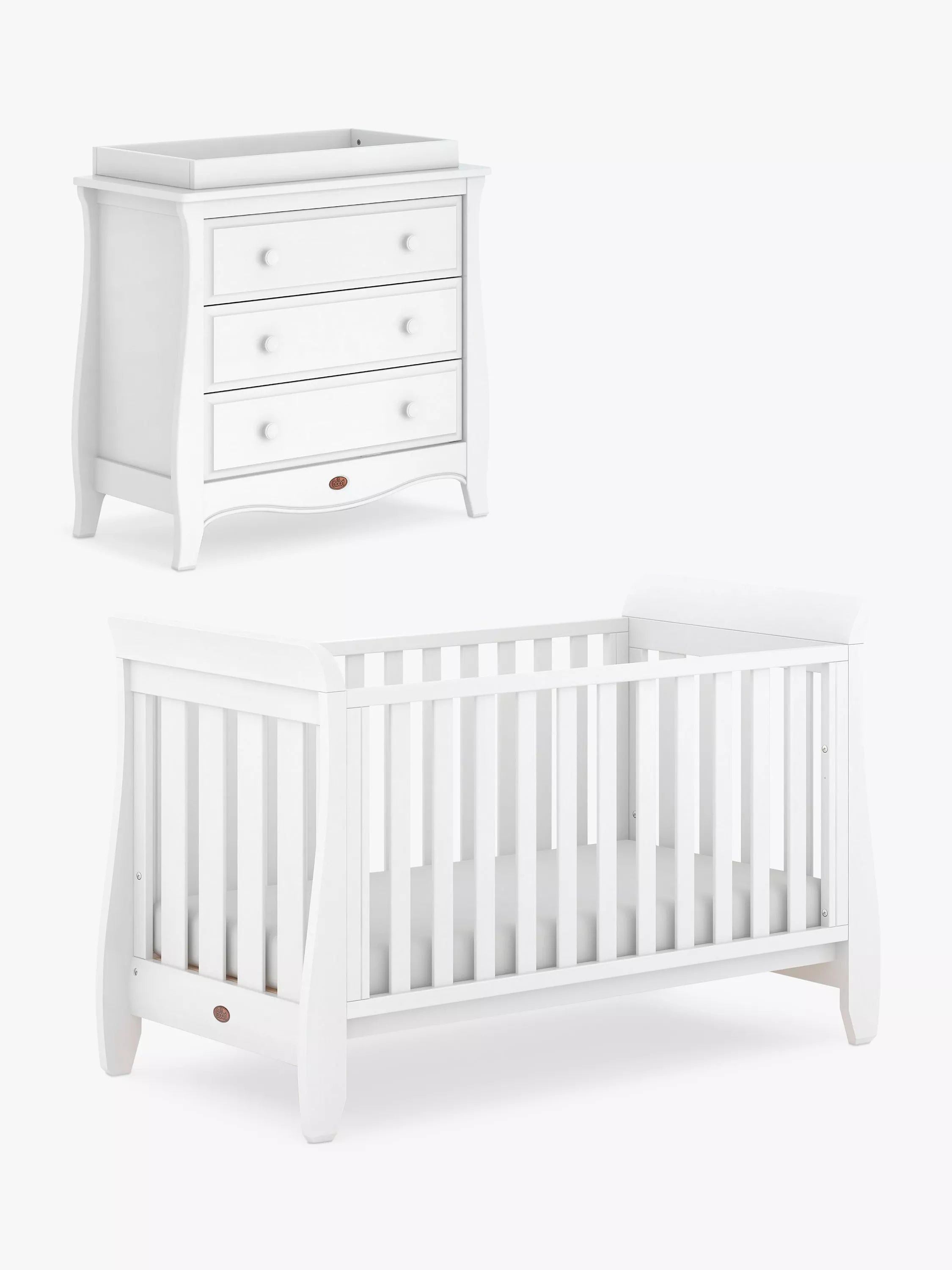 Sleigh 3 Drawer Chest: The beautiful Sleigh 3 Drawer Chest is crafted from sustainable solid wood, and includes 3 fully-extendable drawers, offering plenty of room for changing accessories or clothing. The changing tray easily fixes onto the back to transform your chest of drawers into a changing table. When no longer required it can be removed without damaging your drawers, leaving you with storage to treasure beyond the nursery. Designed with your baby's safety in mind, this chest of drawers and wooden changing tray are finished in the baby-safe low voc paint to help keep your home free of nasty chemicals.