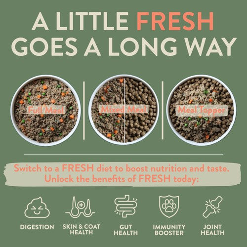 • This frozen dog food is suitable for batch preparation and can be microwaved for serving.