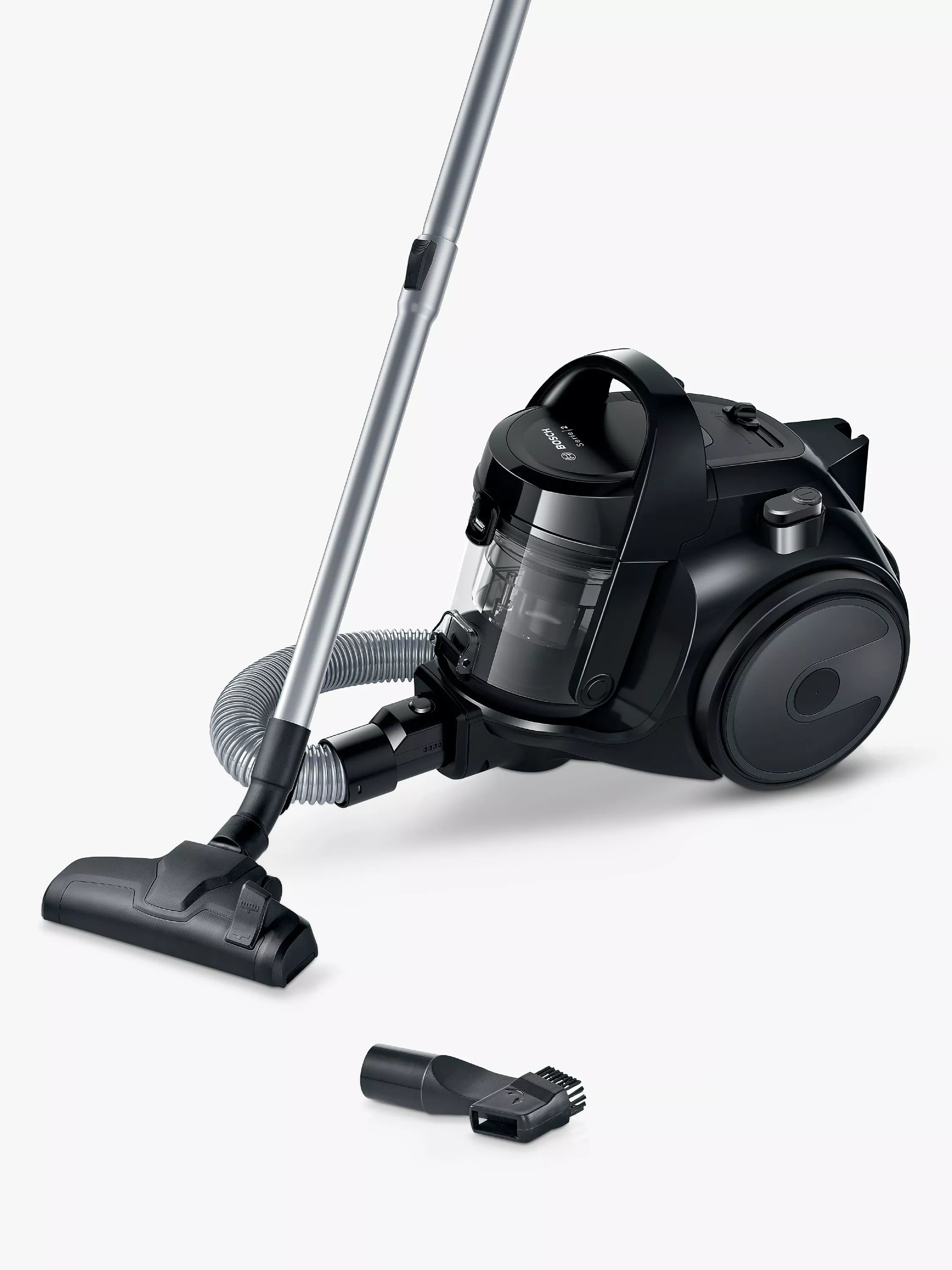 Erleben Sie kraftvolle Reinigung mit dem kompakten und effizienten beutellosen Staubsauger Bosch Serie 2. Dank seines leichten Designs ist die Reinigung ein Kinderspiel, während das hygienische Filtersystem für saubere Abluft und ein gesünderes Zuhause sorgt. Ideal für kleinere Räume und platzsparend zu verstauen.
