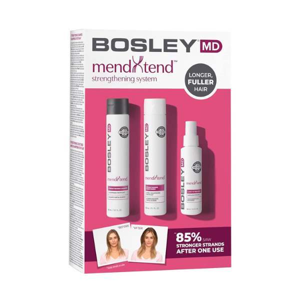 The BosleyMD MendXtend Starter Pack is a comprehensive treatment designed to significantly improve hair health and appearance. This advanced system works internally to fortify strands against daily stressors, offering tangible results fast. Expect noticeable improvements in texture and resilience across your whole head of hair.