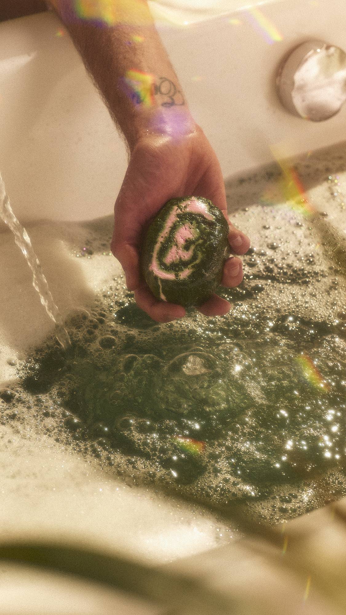 Zerbröseln Sie es unter dem heißen Wasserhahn, um Blasen zu erzeugen, und lassen Sie es in dem ruhigen, immergrünen Wasser einweichen. Wenn Sie dem Beispiel von Madame de Lenclos folgen möchten, empfiehlt sie, 15 Minuten in dem magischen Wasser zu verweilen und an tugendhafte Dinge zu denken.