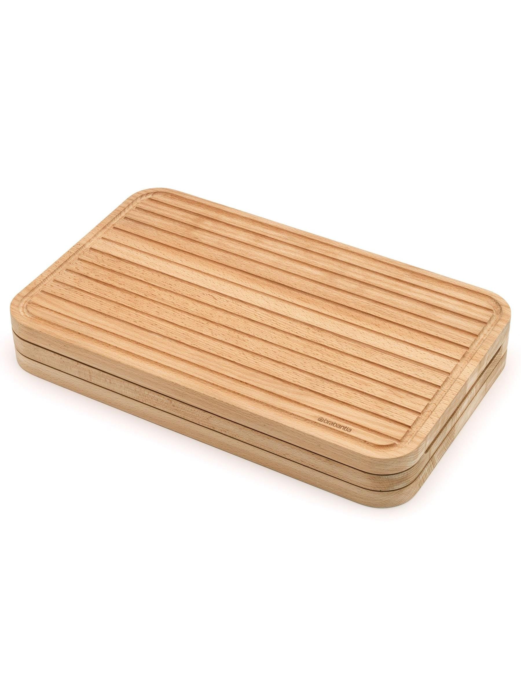Dieses dreiteilige Schneidebrett-Set aus Buchenholz ist für verschiedene Schneidearbeiten in Ihrer Küche geeignet. Das Set enthält ein Brett für Gemüse, eines für Brot und eines für Fleisch. Die Rückseite aller Schneidebretter kann auch zum Servieren von Speisen verwendet werden.