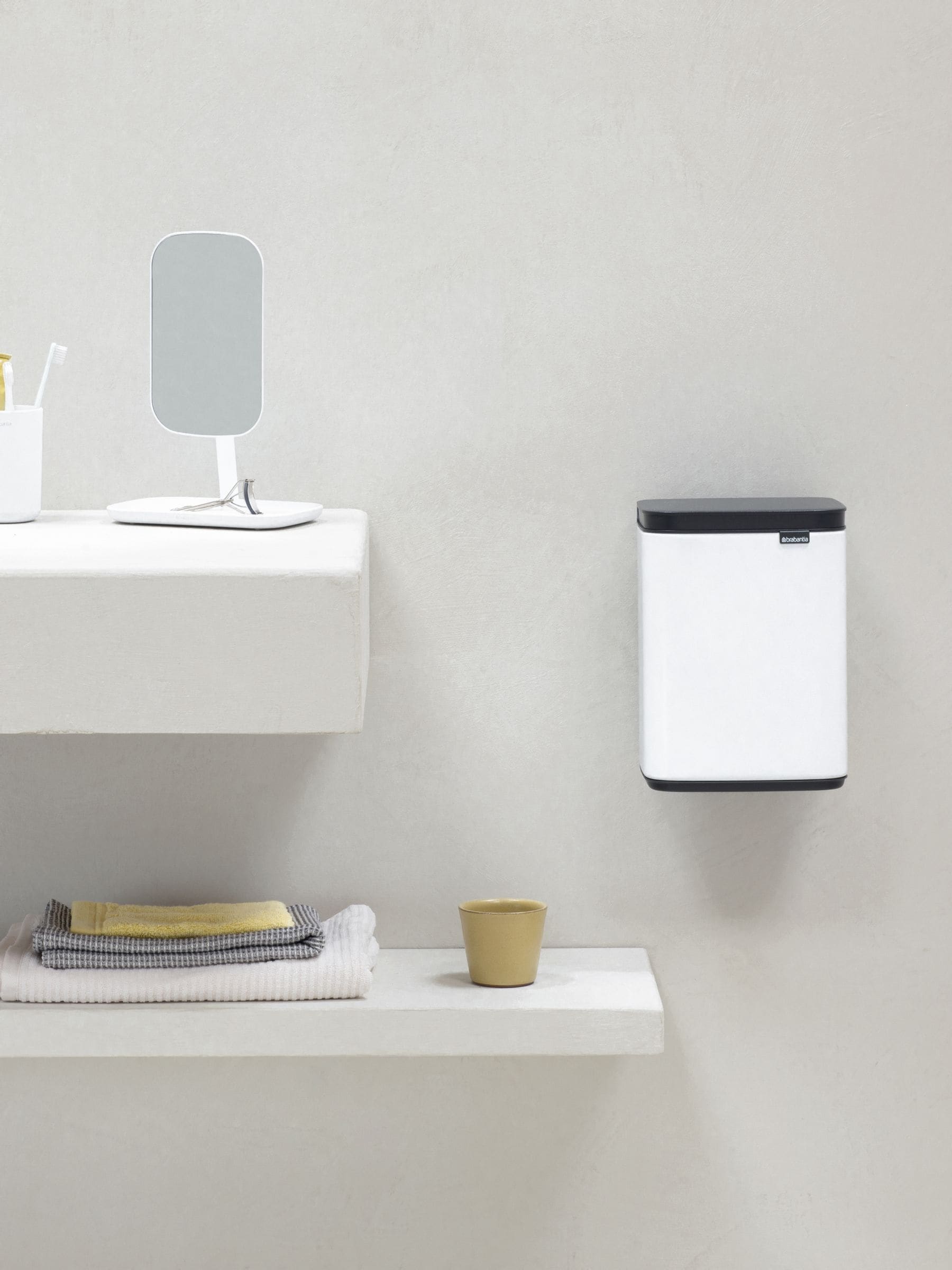 Sie suchen einen kleinen, aber formschönen Abfalleimer? Dann ist der Brabantia Bo Abfalleimer mit 4 Litern Fassungsvermögen genau das Richtige für Sie! Dieser kleine Eimer passt selbst in die kleinste Ecke und lässt sich zudem an der Wand befestigen. Der praktische Deckel lässt sich bequem von links, rechts und vorne öffnen. So müssen Sie sich nicht mehr verrenken, um etwas einzuwerfen. Ein echter Hingucker – innen wie außen!