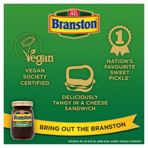 Branston Original Sweet Pickle delivers a distinct flavour profile designed to complement various meals. Use this iconic condiment to instantly enhance the taste and texture of everyday sandwiches or sophisticated cheeseboards. It brings a satisfying, unique combination of delicious tang and crunch to your plate.