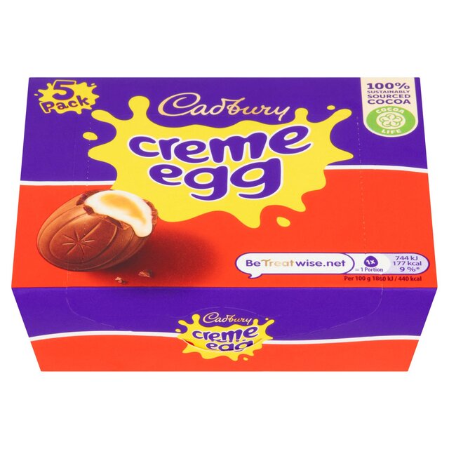 Beißen Sie in ein herrlich dickes Cadbury Creme Egg aus Vollmilchschokolade und genießen Sie die cremige, zartschmelzende Füllung aus Eiweiß und Eigelb. Es gibt unzählige Möglichkeiten, es zu genießen, aber nur ein Cadbury Creme Egg. Hergestellt mit nachhaltig angebautem Kakao. Für Vegetarier geeignet.