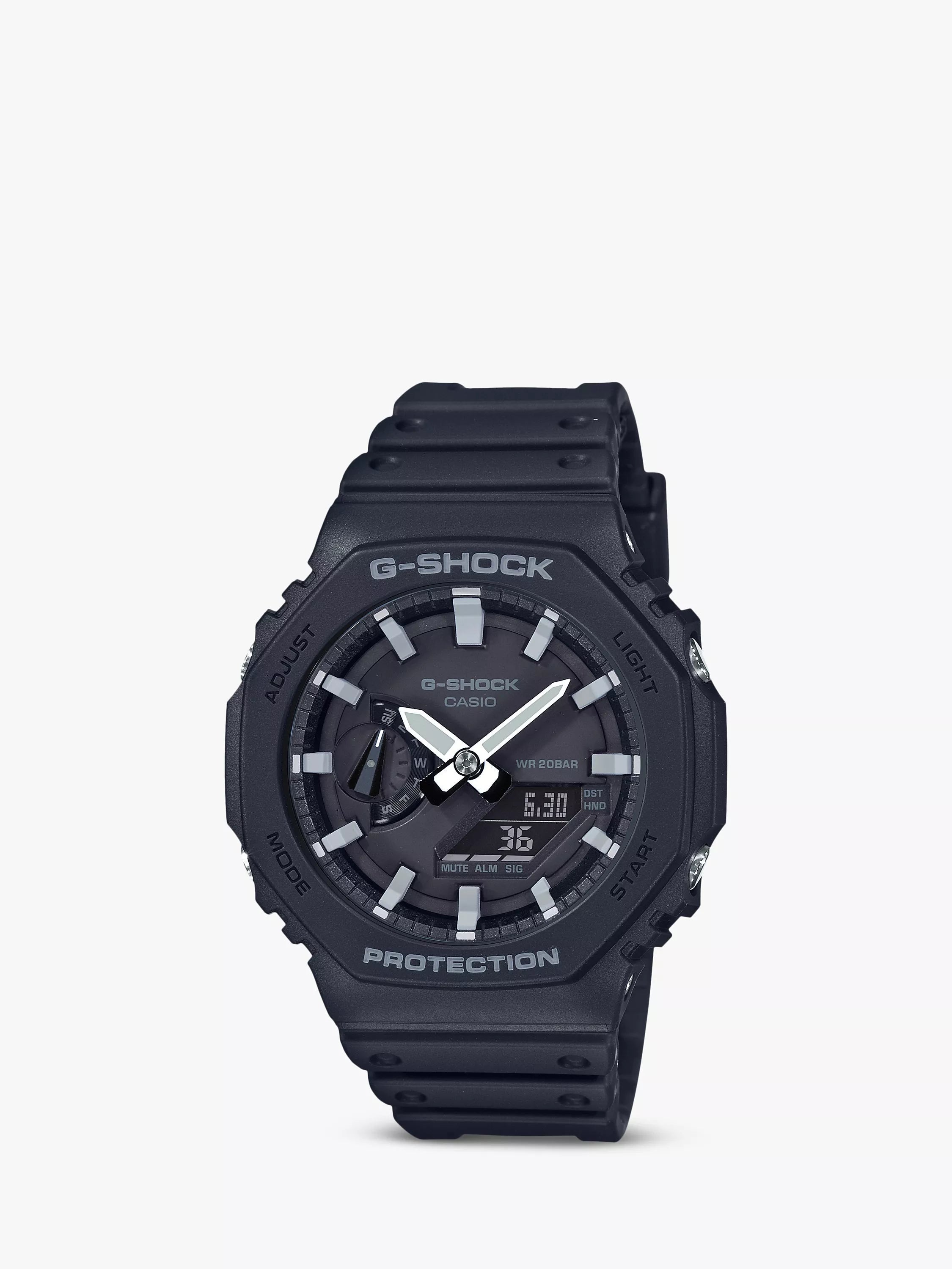 Ausgestattet mit verschiedenen Funktionen wie Alarm, digitaler Zeitanzeige und Wochentagsanzeige, vereint diese Uhr die neueste Carbon Core Guard-Technologie in einem schlankeren, eleganteren Gehäuse. Sie vereint zudem die Robustheit und Langlebigkeit der G-Shock-Reihe. Ihre markanten Zeiger und Indexe sind mit einer speziellen Beschichtung versehen, die sie auch im Dunkeln gut sichtbar macht. Die Uhr wird mit einer stabilen Faltschließe verschlossen.