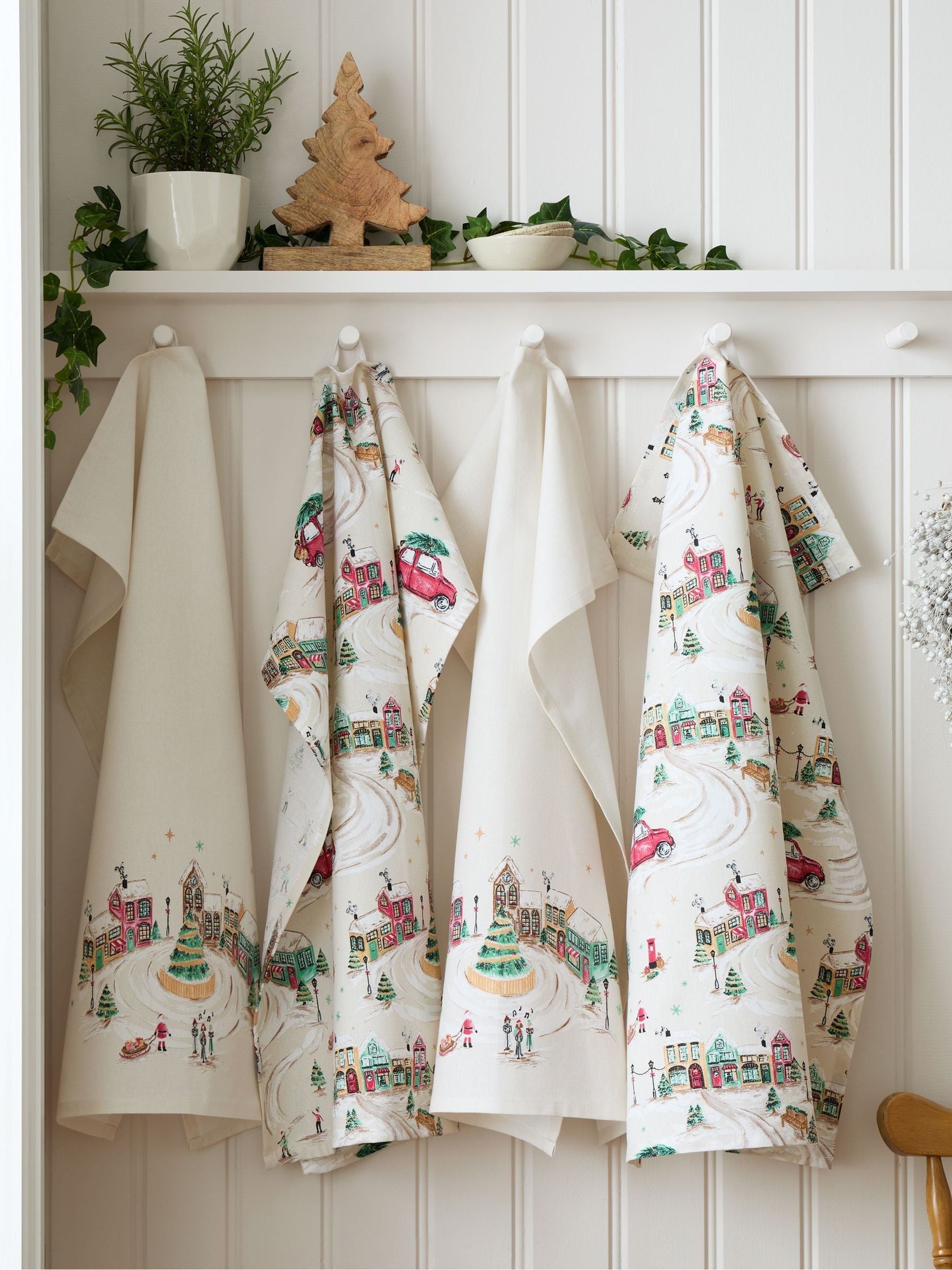 Catherine Lansfield steht für Stil und Qualität – entworfen und entwickelt in Großbritannien. Willkommen in Christmas Town! Tauchen Sie ein in eine Welt, in der die Straßen schneebedeckt sind, der Marktplatz festlich beleuchtet und die Luft von der Freude der Weihnachtszeit erfüllt ist. Mit Mini-Schneemännern, Weihnachtsbäumen und Briefkästen vor verschneiter Kulisse bringen diese Geschirrtücher festliche Stimmung in Ihre Küche. Hergestellt aus pflegeleichter, strapazierfähiger Baumwolle (100 %), sind sie perfekt für den täglichen Gebrauch in der Weihnachtszeit. Reine Baumwolle: Die natürlichen Baumwollfasern ergeben einen glatten und angenehm weichen Stoff. Strapazierfähig: Für regelmäßigen Gebrauch und häufiges Waschen geeignet. Saugfähig: Nimmt Flüssigkeiten mühelos auf und hält Ihr Zuhause sauber und trocken. Vor dem ersten Gebrauch waschen. Maschinenwäsche bei 30 Grad. Nur an der Luft oder auf der Leine trocknen. Größe: 1 Stück.