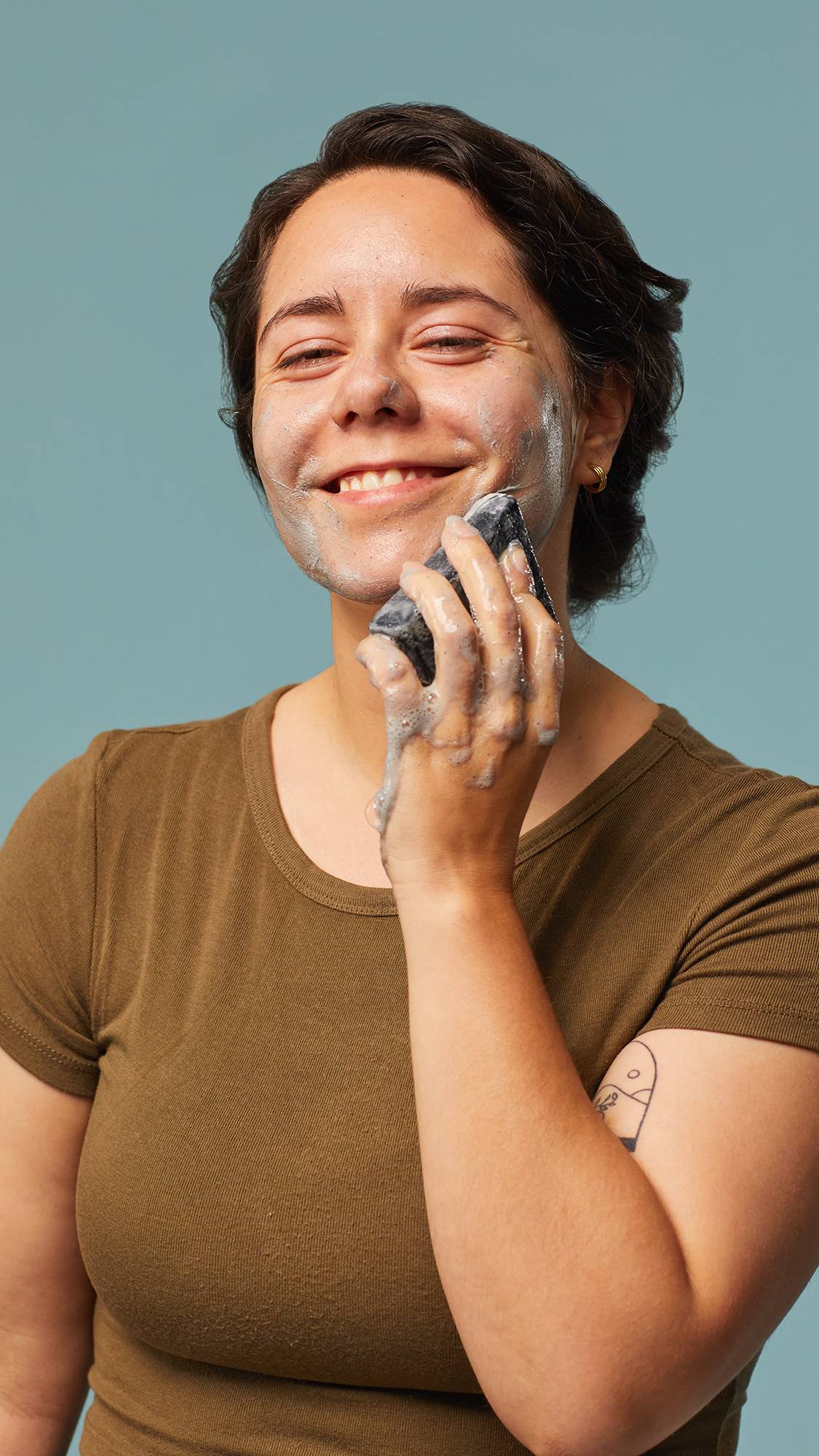 Einfach in den Händen aufschäumen und auf die feuchte Haut einmassieren, anschließend abspülen – für einen strahlenden, reinen Teint.