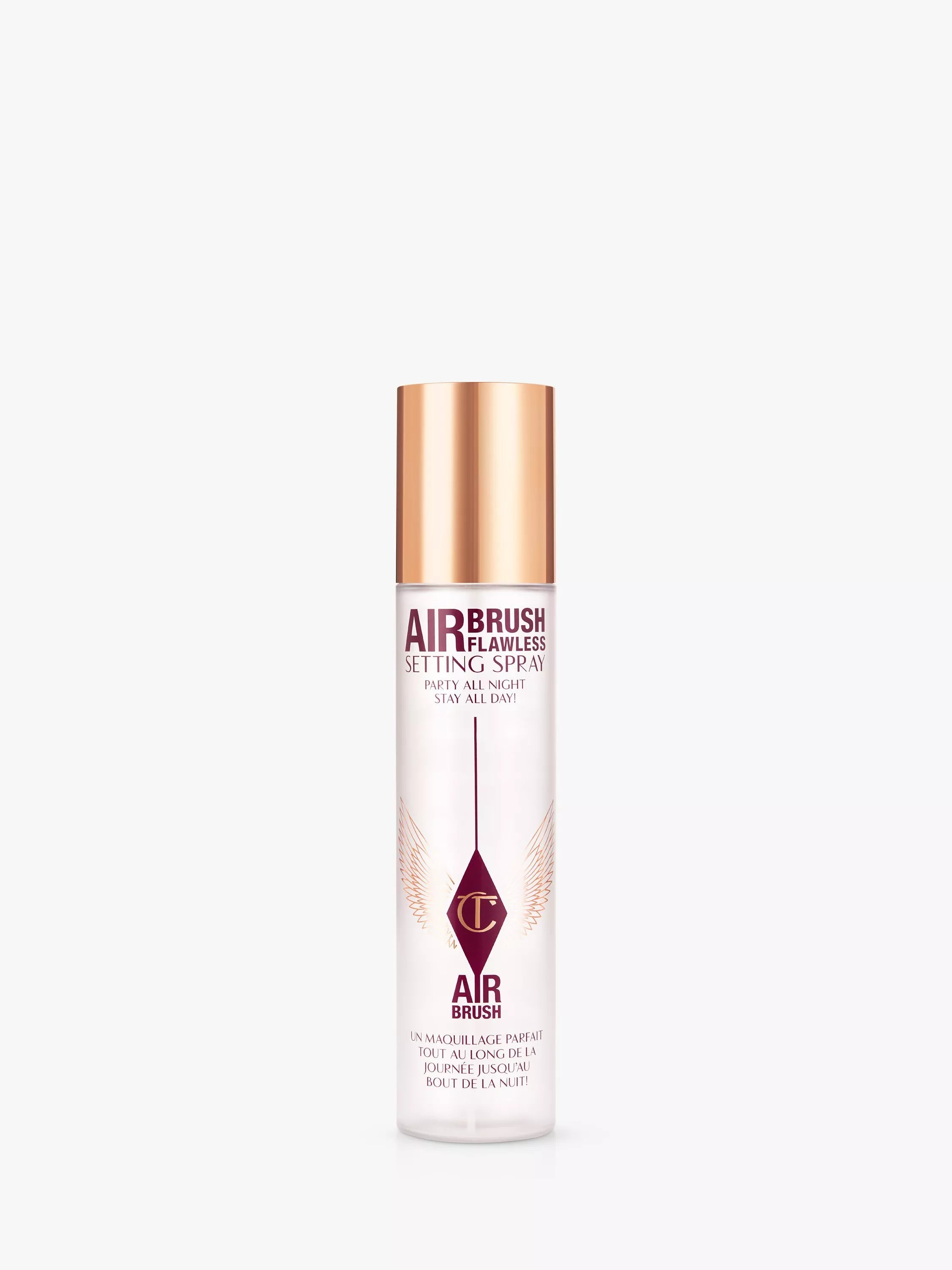 „Ich habe das Airbrush Flawless Setting Spray mit einer magischen Formel aus teintverschönernden Inhaltsstoffen entwickelt – von glättender Aloe Vera über feuchtigkeitsspendenden japanischen Grüntee bis hin zu aromatischem Harz! Mit seinem zarten, belebenden, frischen Blumenduft schenkt es Ihnen das olfaktorische und sinnliche Erlebnis eines Spa-Tages und sorgt dafür, dass Ihr Make-up auf dem roten Teppich, dem Laufsteg oder nach einem Lifting immer frisch aussieht! Es spendet Feuchtigkeit und fixiert – Ihr unsichtbarer Schutzschild für jeden Tag, der Ihren magischen Make-up-Look versiegelt … die ultimative Airbrush-Make-up-Fixierung.“ Charlotte Tilbury.