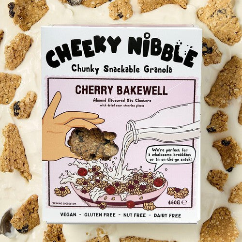 This granola features chunky, snackable clusters with an almond flavour and sour dried cherries, recreating the taste of a Bakewell Tart. It is formulated using natural flavouring that delivers the desired profile while remaining completely free from peanuts and tree nuts. This allows individuals with nut allergies to safely enjoy this breakfast option daily.
