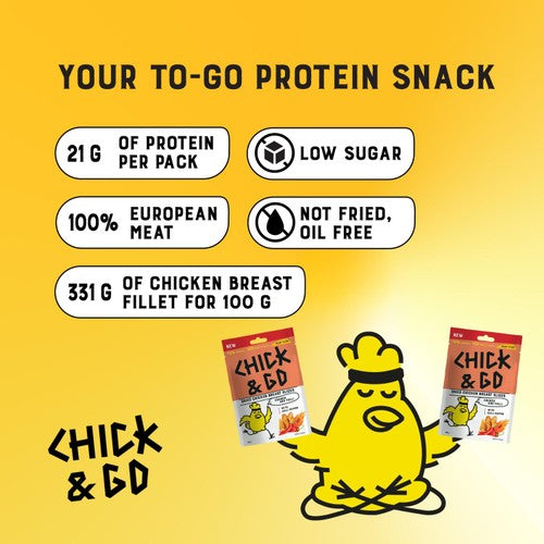 Chick and Go offers a premium, convenient snack option crafted from 100% European chicken breast infused with a chilli marinade. This product contains no fillers and is never fried, ensuring a clean source of fuel for an active schedule. It is a certified Halal snack meeting high European production standards.