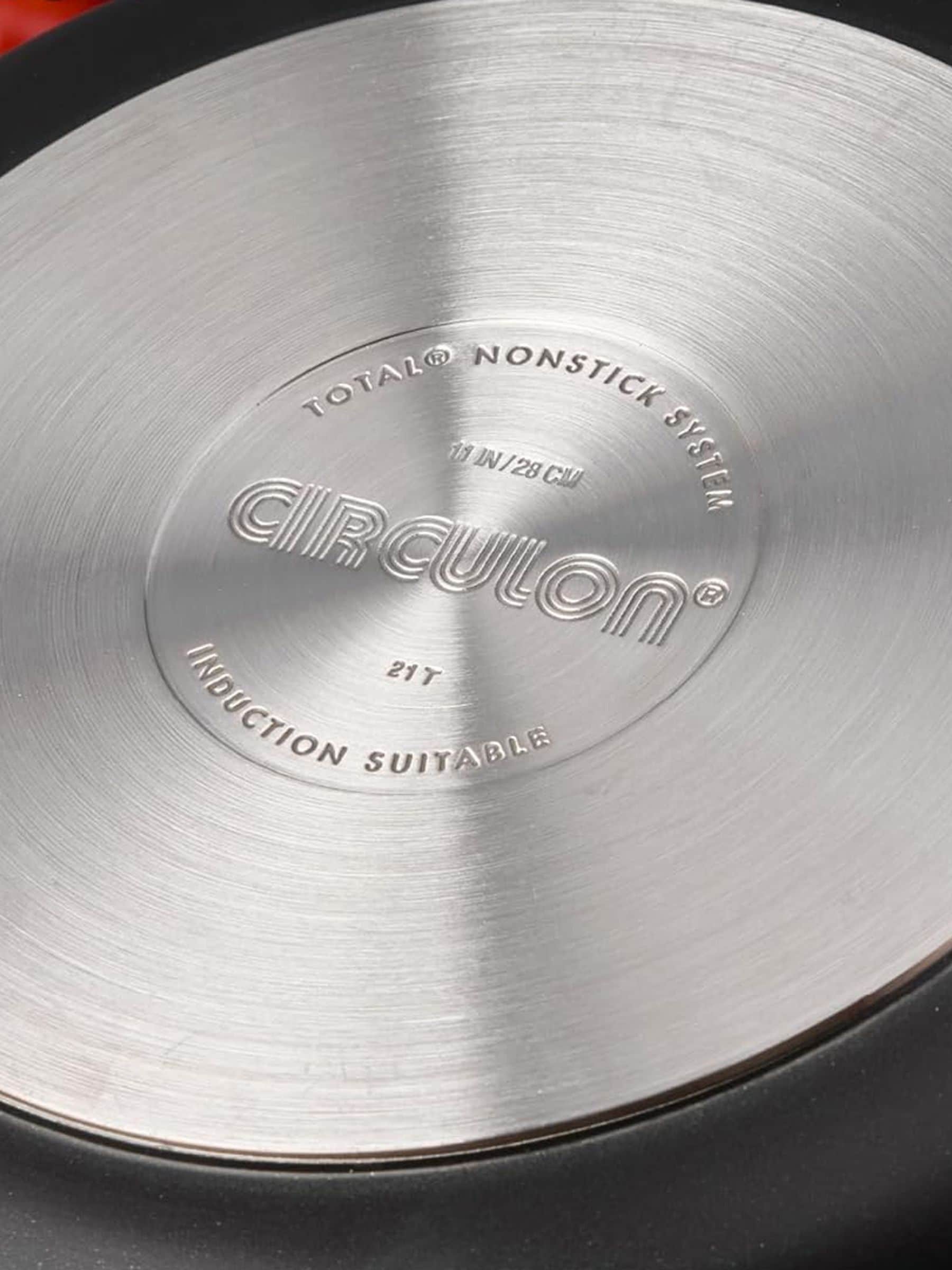 Circulon Style; Stilvolles Induktionskochgeschirr mit dreifacher Antihaftbeschichtung, 20 cm Bratpfanne. Beeindrucken Sie Ihre Gäste mit dieser eleganten Serie. Circulon vereint stilvolles Design mit robuster Langlebigkeit. Hergestellt aus hart eloxiertem Aluminium, das doppelt so hart wie Edelstahl ist, verfügt diese Serie über die innovative 3-lagige Antihaftbeschichtung, die 15-mal länger hält! So gelingt das Anhaften von Speisen mühelos. Dank des dicken Edelstahlbodens sind alle Pfannen der Serie für alle Herdarten, inklusive Induktion, geeignet. DREIFACH-ANTIHAFTBESCHICHTUNG – Die Style-Serie ist mit unserer innovativen 3-lagigen Antihaftbeschichtung ausgestattet, die nachweislich bis zu 15-mal länger hält als die unserer engsten Mitbewerber. FÜR INDUKTION GEEIGNET – Diese Induktionsbratpfanne besitzt einen extra dicken Edelstahlboden, der die Wärme effizient und gleichmäßig leitet und so stets optimale Kochergebnisse garantiert. Die Style-Serie ist mit allen Herdarten, inklusive Gas, kompatibel. OFEN- UND SPÜLMASCHINENFEST – Die Style-Serie ist nicht nur spülmaschinenfest, sondern auch dreimal spülmaschinenbeständiger als vergleichbare Serien. Und ganz nebenbei: Sie ist auch bis 260 °C ofenfest. ROBUSTES KOCHGESCHIRR – Als Pioniere in der Kochgeschirrtechnologie zeichnet sich unser hart eloxiertes Kochgeschirr durch extrem widerstandsfähige Oberflächen aus, die doppelt so hart wie Edelstahl sind. Langlebiges Kochgeschirr, nachhaltig produziert für eine lange Lebensdauer. UNVERGLEICHLICHES DESIGN – Diese Serie besticht durch ihr elegantes Design mit stilvollen, S-förmigen, kühl bleibenden Griffen auf polierten Edelstahldeckeln. Robust genug für den täglichen Gebrauch und gleichzeitig perfekt für besondere Anlässe und Dinnerpartys, bei denen die Gerichte direkt vom Ofen auf den Tisch kommen.