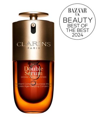 Clarins Double Serum 30ml offers an innovative approach, utilising a unique dual-formula system for the facial area. This powerful product merges ninety-five per cent of its composition from naturally-sourced components, blending with twenty-two potent plant extracts. This treatment efficiently targets all visible signs of skin ageing. It delivers a fortifying boost, supporting all five essential skin functions throughout the day.
