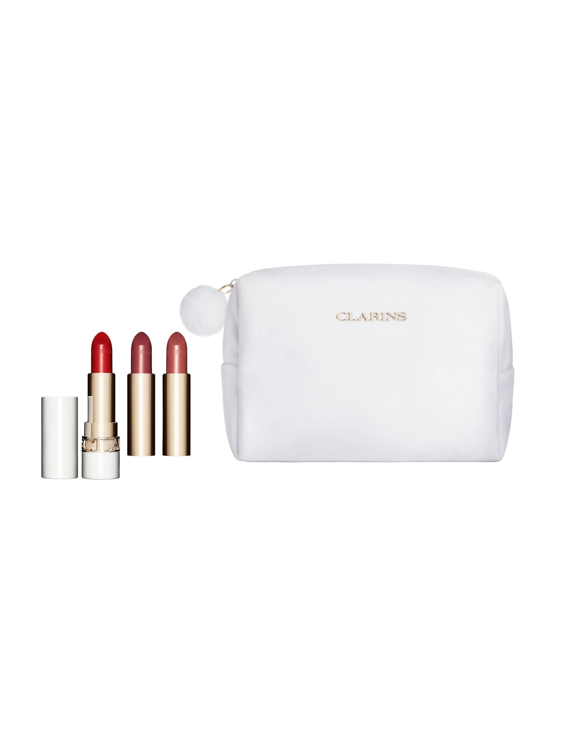 Glow under the mistletoe! This luxurious set includes a trio of FULL-SIZE Joli Rouge Refillable Lipsticks in three flattering shades (742 Joli Rouge, 732 Grenadine & 705 Soft Berry), along with a classic White lipstick case perfect for any occasion. Worth £76!.