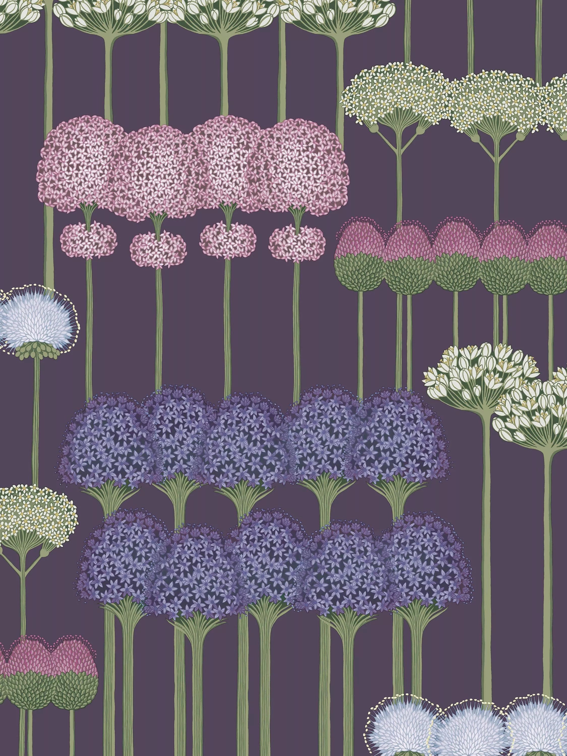 Allium ist eine moderne, geometrische Interpretation des traditionellen Blumenmotivs. Die auffällige, krautige Staude wird in Form von markanten, sich wiederholenden Blütenständen effektvoll in Szene gesetzt. Mit ihrem Feuerwerk an Farben und Texturen bilden die kugelförmigen Blütenstände des Alliums, kombiniert mit ihren langen, blattlosen Stängeln, ein einzigartiges Blütenmuster.
