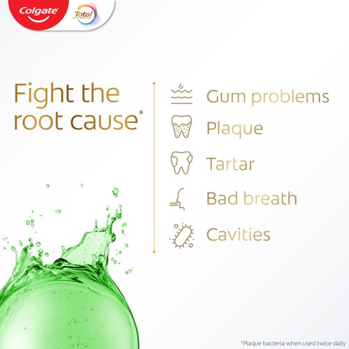 Read MoreThe Colgate Total Advanced Deep Clean Mouthwash gives you 24 hours antibacterial protection* & deep clean from the advanced Pro-Defence Zinc technology. *Plaque bacteria when used 2x a day