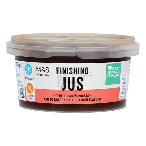 This M&S Finishing Jus provides a versatile, rich flavour base for many dishes. It combines beef and chicken notes, making it an ideal accompaniment to traditional roasts or a flavour enhancer for pasta sauces. This product is manufactured in the United Kingdom.