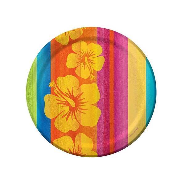 These Creative Party round plates are supplied in a convenient pack of eight for your next gathering. Constructed from durable paper material, they offer a sturdy solution for serving food and snacks. The design features an attractive hibiscus print suitable for various celebrations.