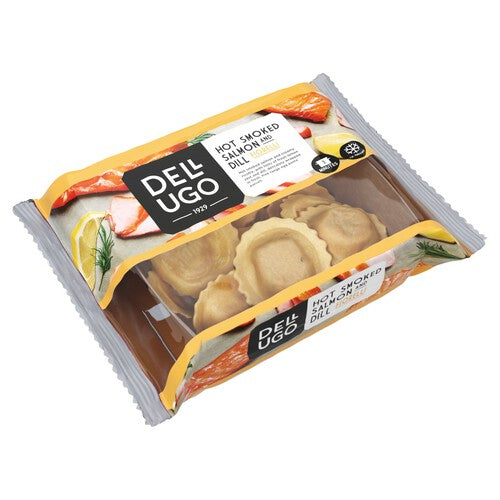 Dell'Ugo presents delicate fresh pasta parcels filled with a luxurious combination of hot smoked salmon and creamy ricotta cheese. These flavourful pockets are lifted by subtle notes of fresh lemon zest and aromatic dill. This filling creates an appealing texture and taste experience for a quick, quality meal.