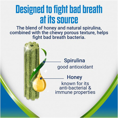 Purina Dentalife ActivFresh chews are formulated by experts to combat bad breath at its root cause, addressing potential underlying dental issues. These chews contain natural spirulina and honey for effective, targeted action rather than simply masking odours for your medium-sized dog.