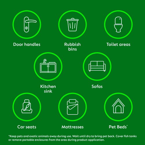 • Eliminates a range of listed bacteria, viruses, and fungi types.