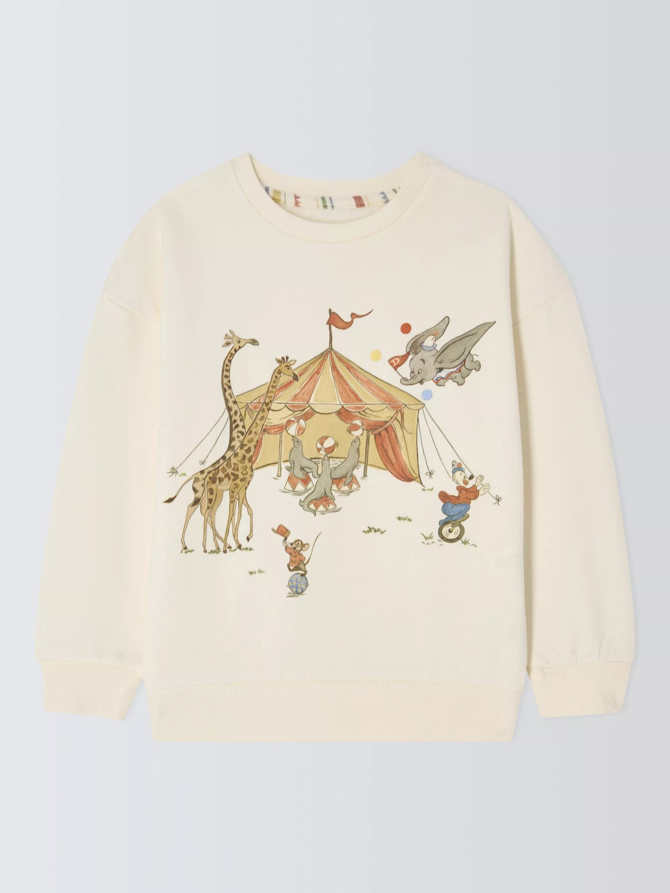 Dieses bezaubernde Dumbo-Sweatshirt, eine gelungene Zusammenarbeit von Disney und Sanderson, ist eine charmante Ergänzung für jede Kindergarderobe. Es ist aus weichem Jersey aus 100 % Baumwolle gefertigt und mit einem handgemalten Zirkusmotiv versehen – perfekt für kleine Disney-Fans. Ein tolles Geschenk für Liebhaber klassischer Disney-Zeichentrickfilme.