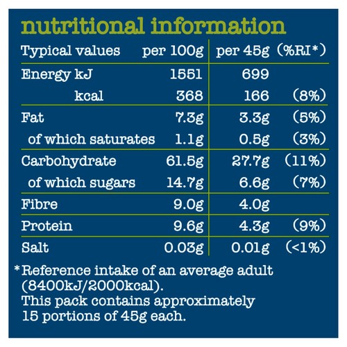 • Made with a blend of nourishing oats, dried fruits, and seeds.