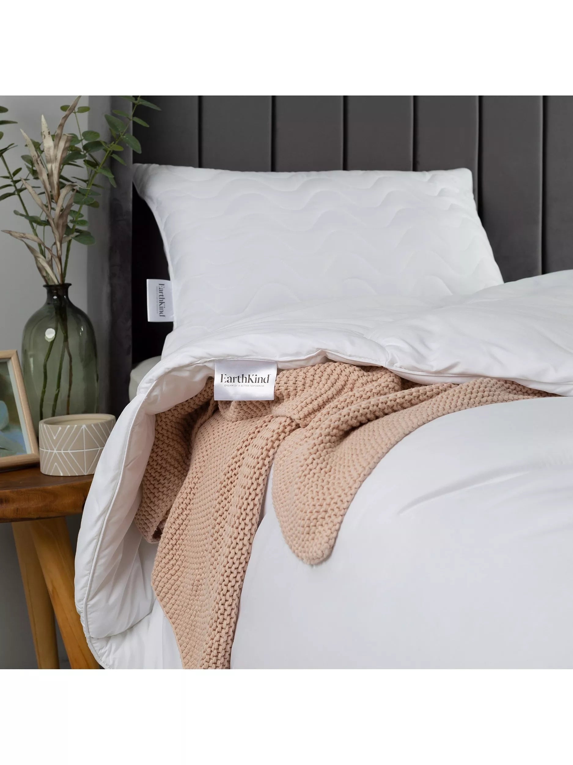 EarthKind verwendet für alle seine synthetischen Bettdecken und Kissen ausschließlich recycelte Materialien. Recycelte Polyesterfasern sind genauso weich und warm wie herkömmliche Fasern. Alle Kissen und Bettdecken von EarthKind werden in Großbritannien hergestellt, sind plastikfrei und die Verpackung ist so konzipiert, dass sie wiederverwendet werden kann.