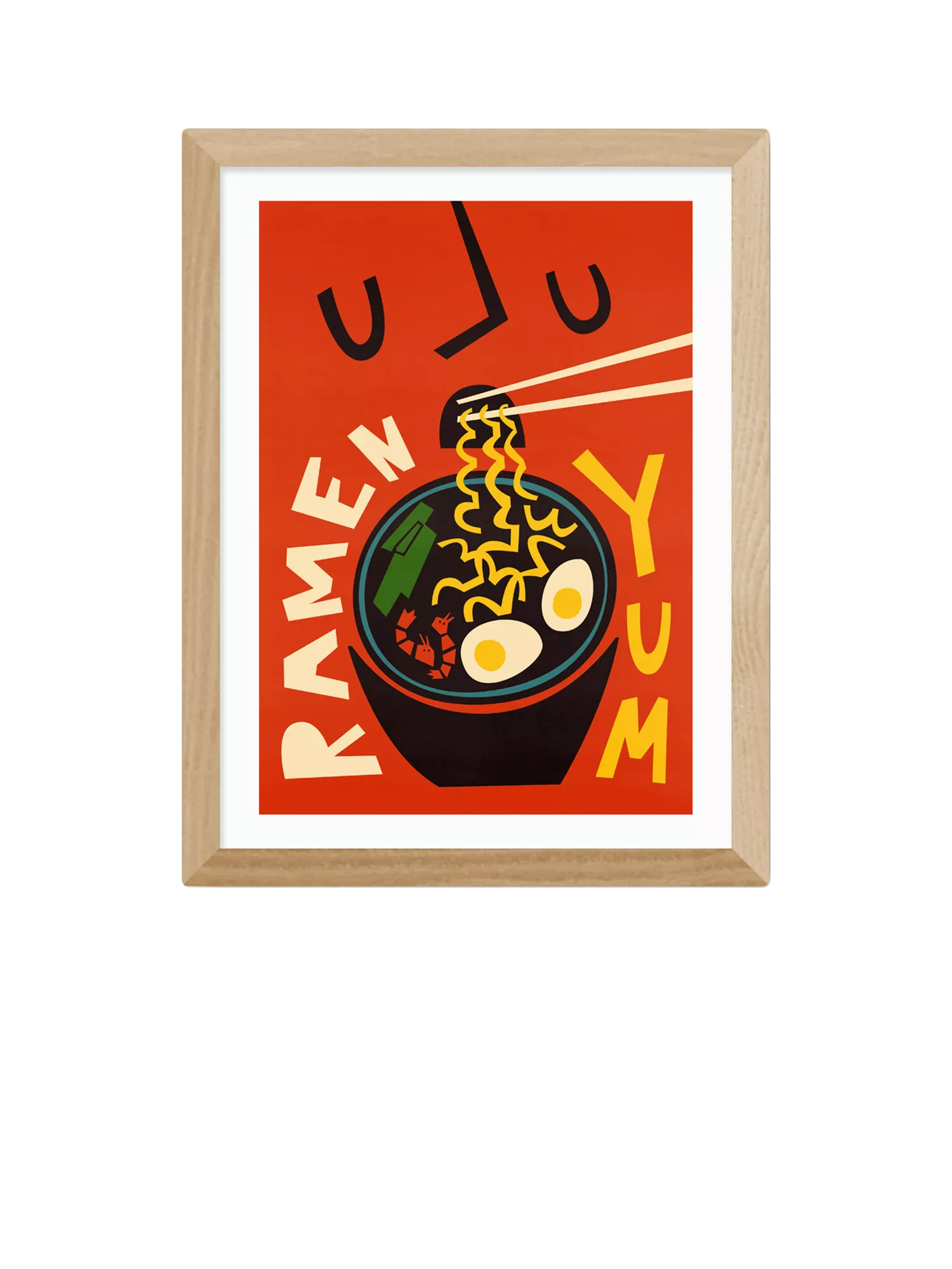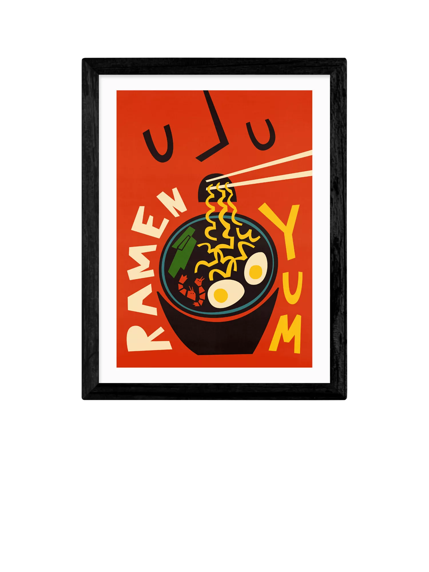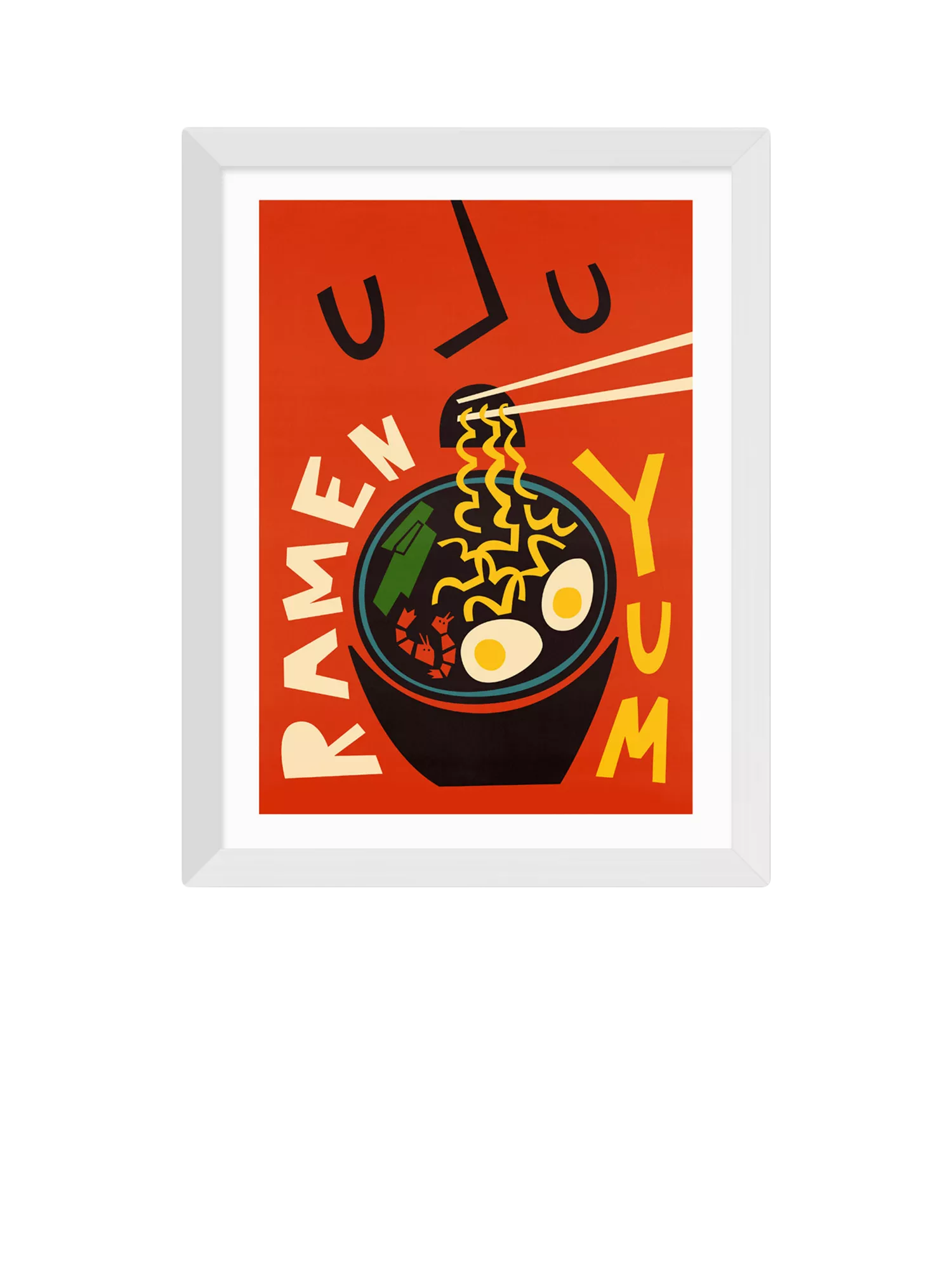 Verleihen Sie Ihrem Zuhause mit diesem entzückenden Yum Ramen-Druck von Fox & Velvet lebendige Farben und ein kühnes Design.
