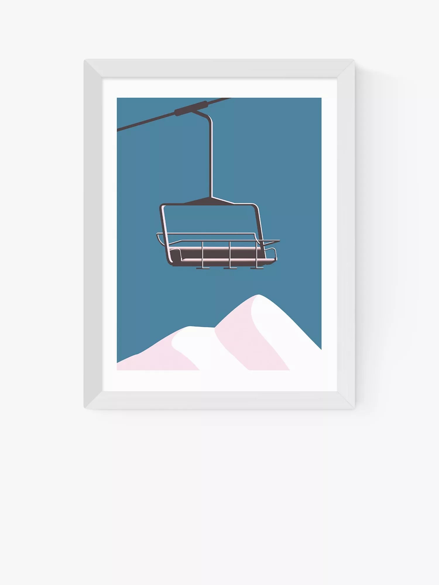 Dieser minimalistische Druck von Keeler & Sidaway holt die Skipisten nach Hause und zeigt einen Sessellift und Berge.