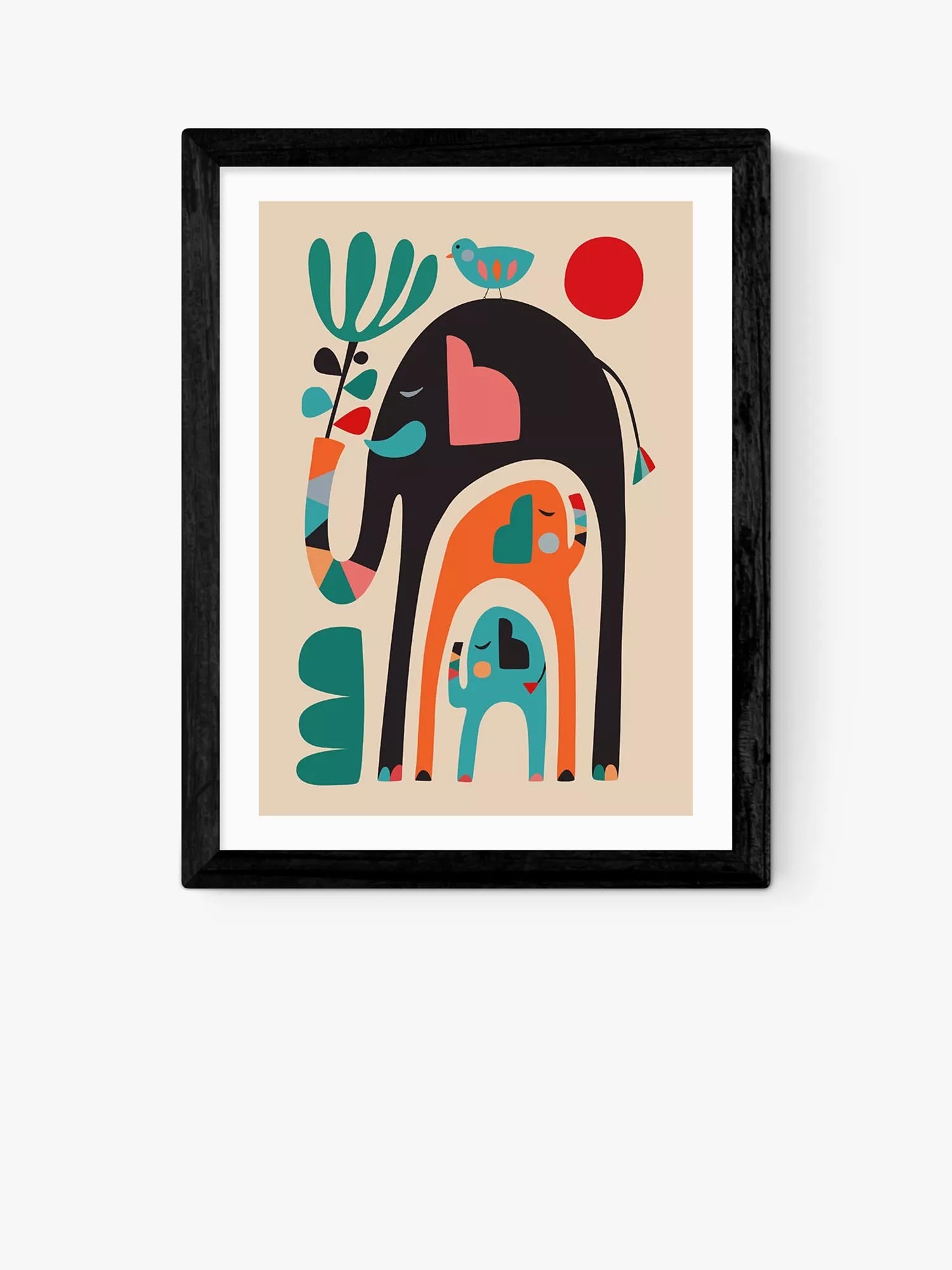 Eine farbenfrohe Interpretation eines Elefantentrios von Rachel Lee.