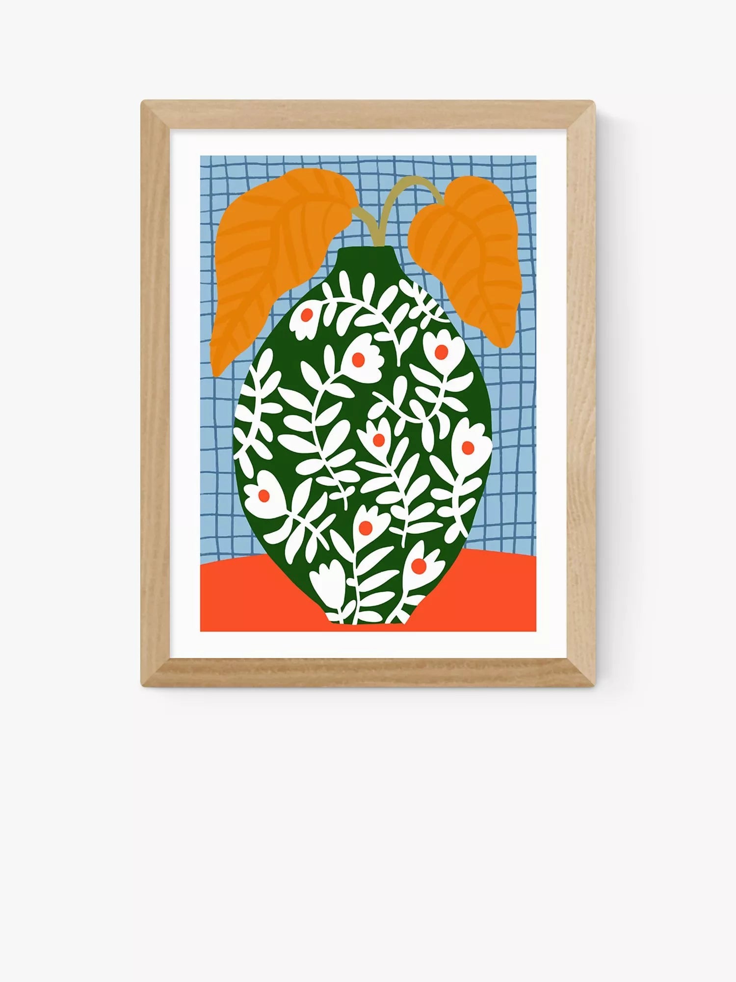 Verleihen Sie Ihren Wänden mit diesem sattgrünen Blumentopf-Kunstdruck der Künstlerin Teresa Rego einen Farbtupfer.