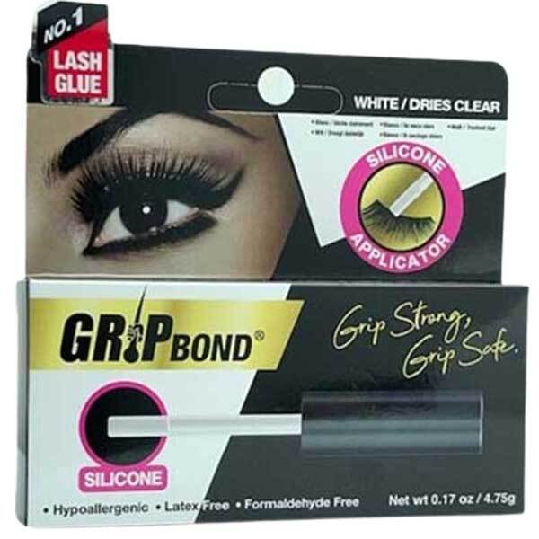 Ebin Grip Bond Wimpernkleber, weiß/transparent mit Silikonapplikator – einfach auf die Wimpern auftragen. Der Kleber hält auch nach dem Haarewaschen und sogar länger.