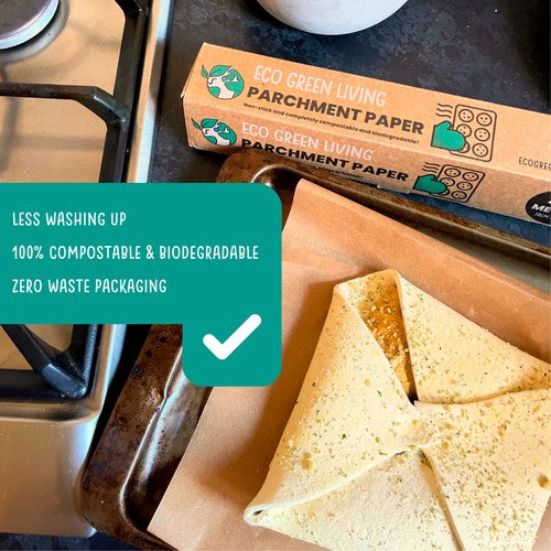 Elevate your kitchen experience with Eco Green Living's premium Parchment Paper, the ultimate choice for environmentally conscious baking and cooking. This essential item is fully certified compostable and manufactured from unbleached, FSC-certified wood pulp, guaranteeing responsible sourcing without chlorine or harsh dyes.