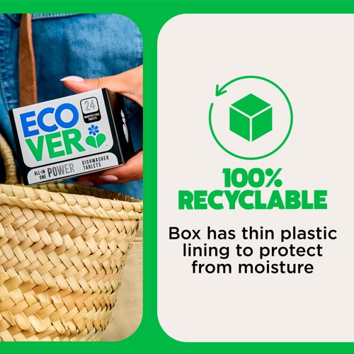 For best results: Do not place tablet in cutlery basket. If water hardness above 20°dH add normal dishwasher salt. Use only with dishwasher-safe material - no wood, silver, aluminium, copper, hand-painted ceramics, antiques and crystal. If in doubt, wash item by hand with Ecover washing-up liquid. Please wash hands after handling to avoid contact with eyes.