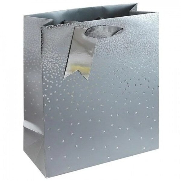 This set provides six medium-sized gift bags from Eurowrap, making them suitable for various events. Each bag features a contemporary colour gradient ombre design complemented by small star patterns for a decorative appearance.