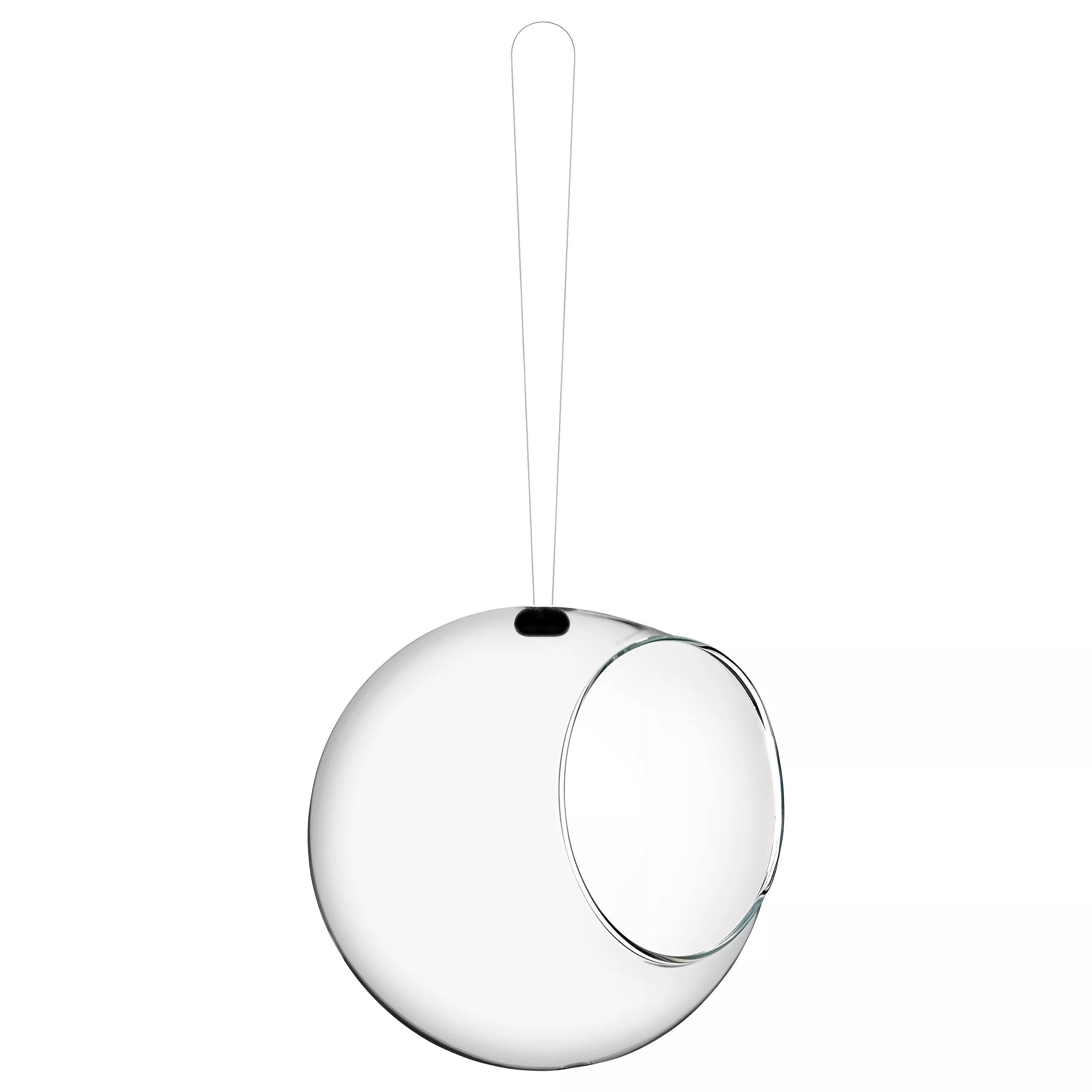 Die Vogelfutterhäuschen sind einem Webervogelnest nachempfunden und bestehen aus Klarglas, sodass man die Vögel beobachten kann.