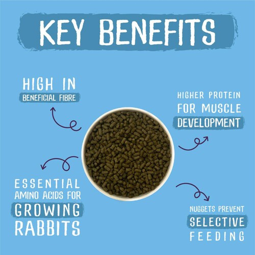 Excel Junior Dwarf Rabbit Nuggets with Mint are specifically formulated to complement the diet of young rabbits. These nuggets support healthy development when fed alongside plenty of hay and fresh grass, which should form the majority of their intake. The formula helps prevent selective feeding by ensuring balanced nutritional delivery.